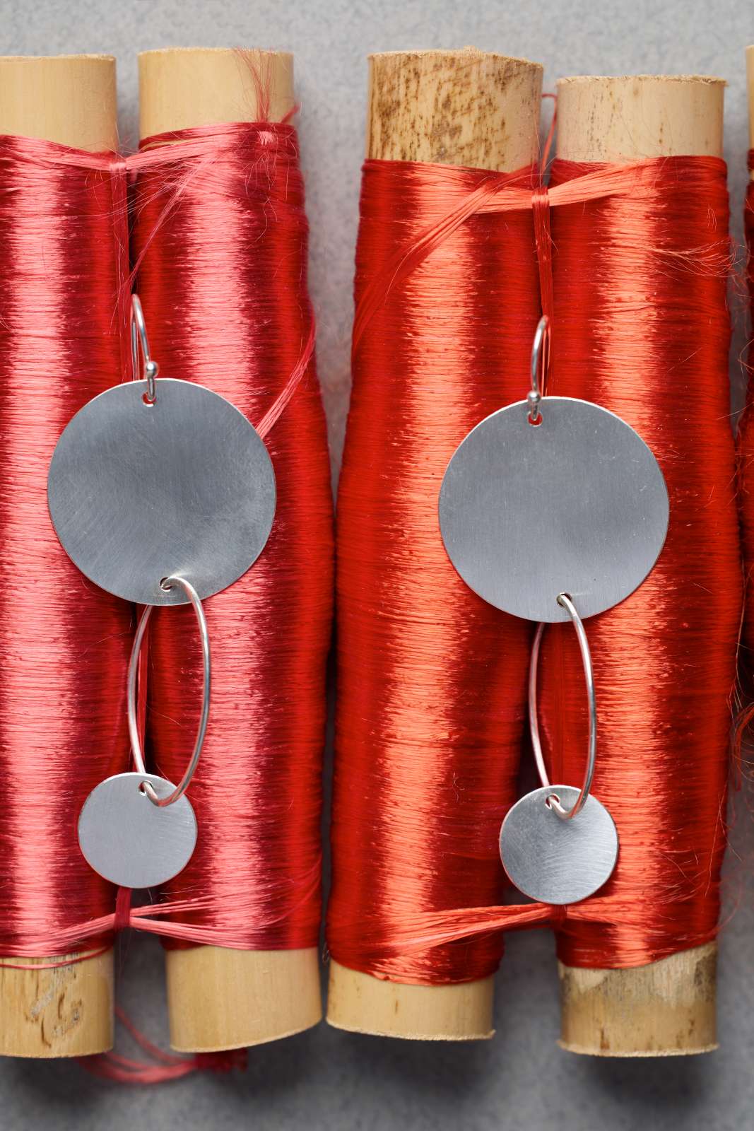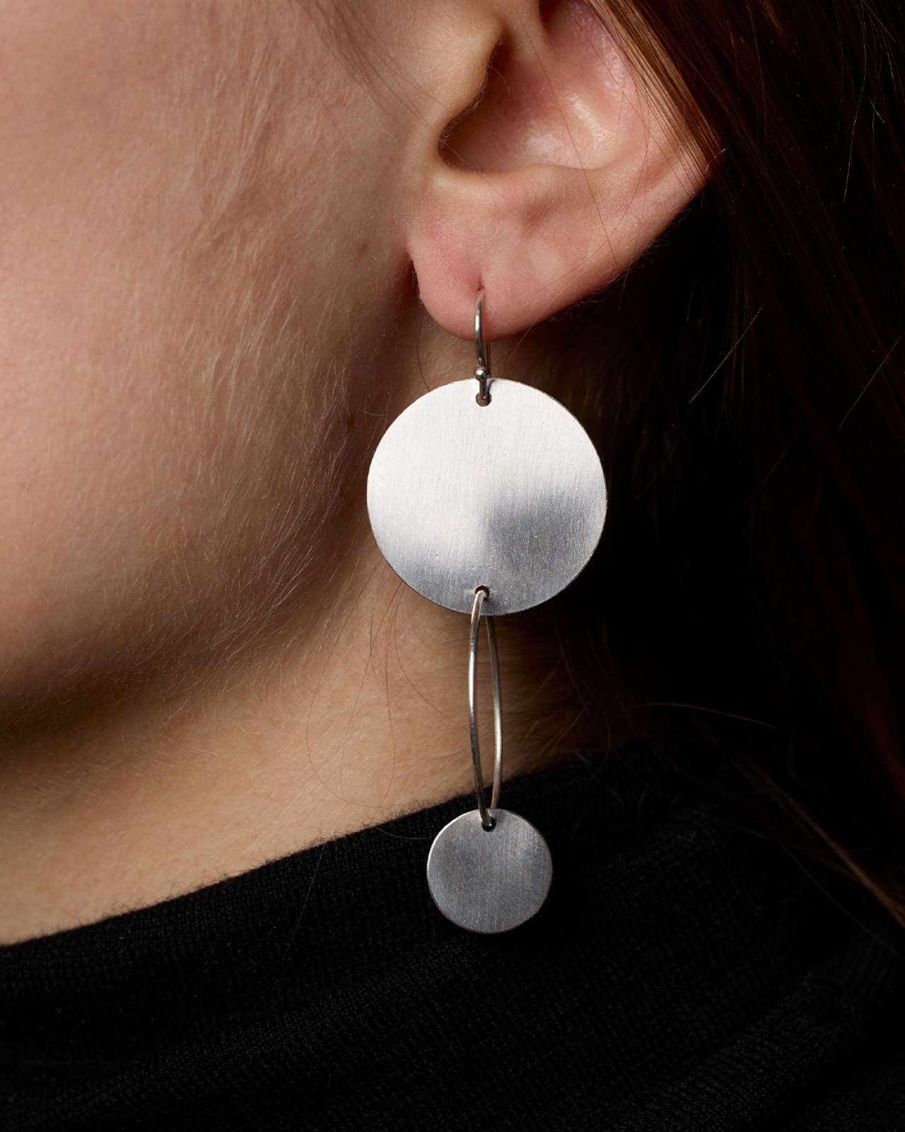 Our Maxi Cosmo earrings feature two flat hoops in satin-finished sheet silver, joined by an oval wire.
