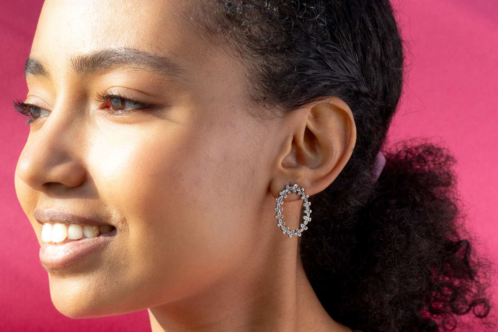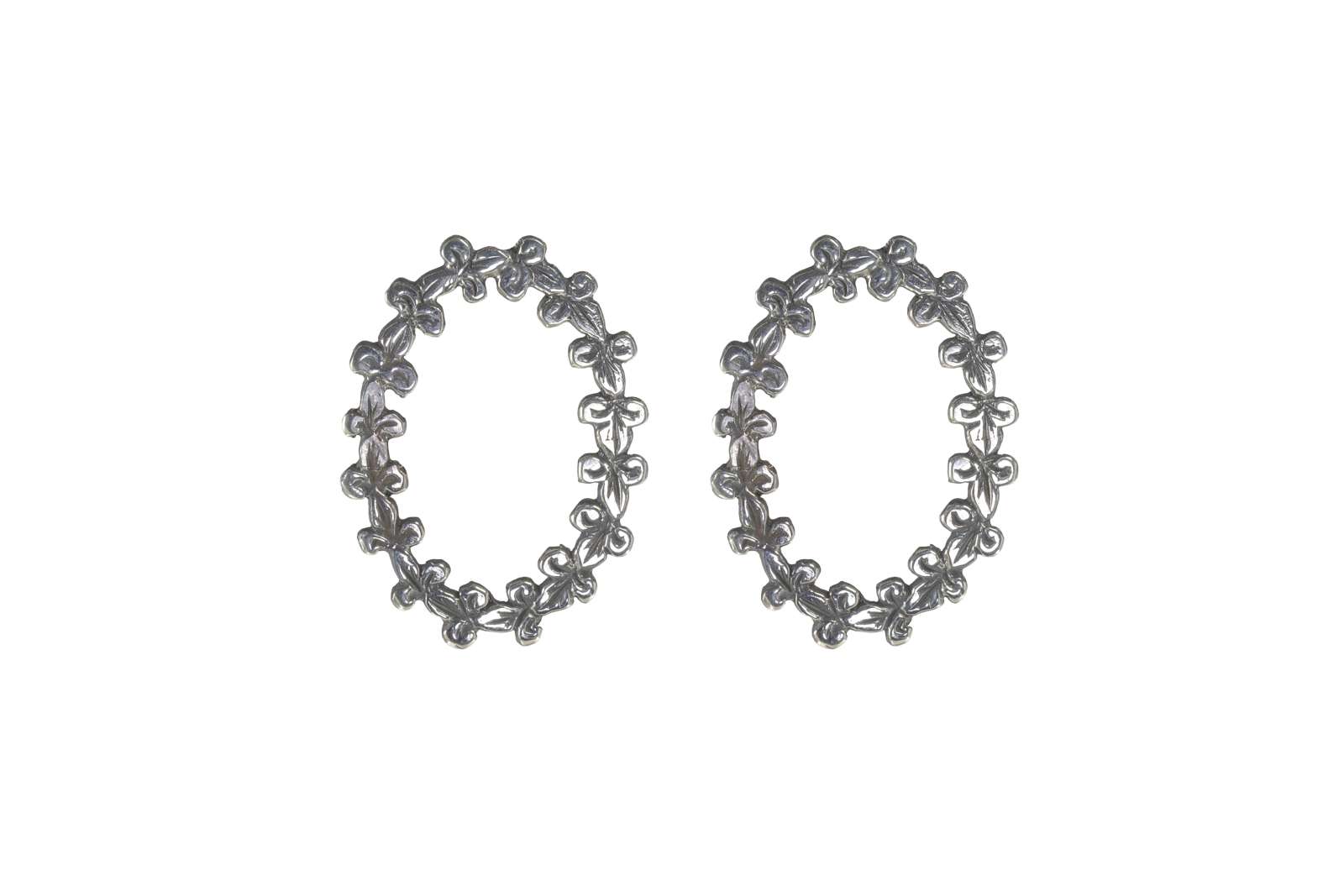 Our iconic Florentine lily motif repeats to form an elegant oval in 925 sterling silver.